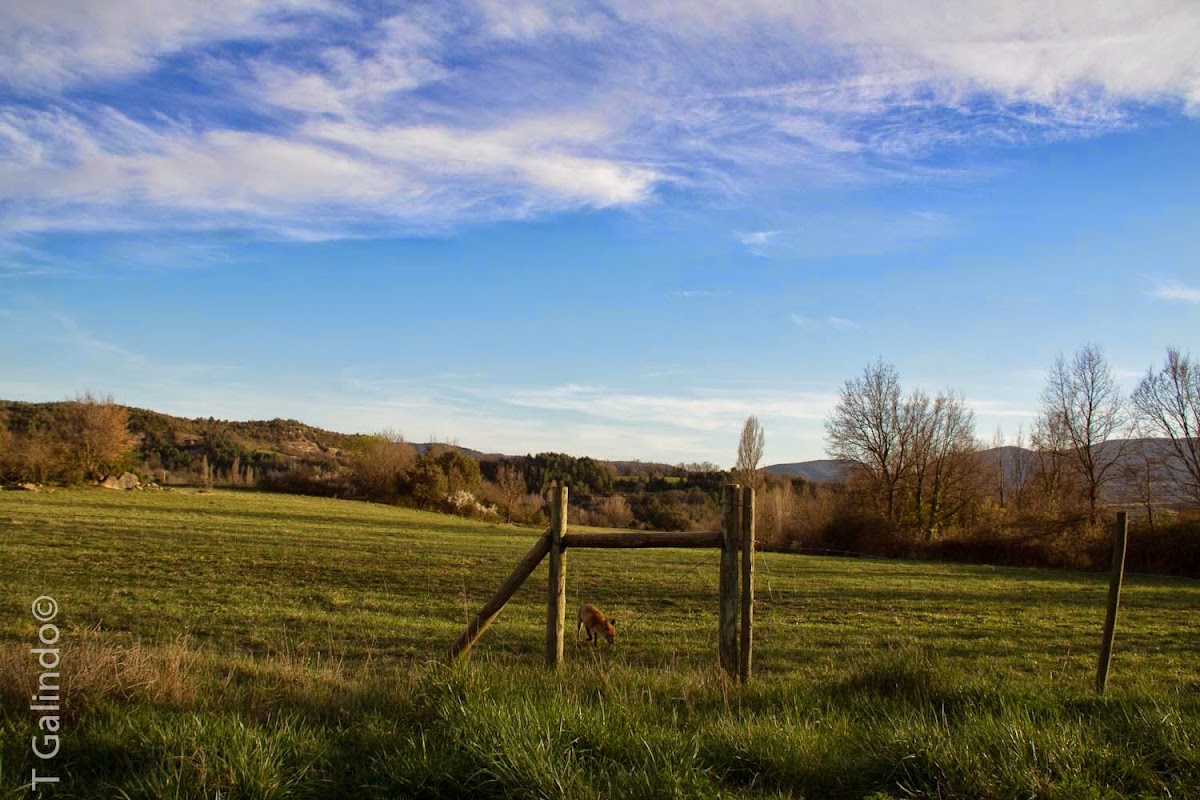 Sí, lo reconozco, no soy de los que van de aquí a la esquina para visitar una catedral o un monumento, pero para ver un árbol como este que hay en Lecina, en la oscense sierra de Guara, sí que voy gustoso. El zorrito fue una sorpresa con la que nos topamos a la salida, andaba cazando y no nos hizo ningún caso.